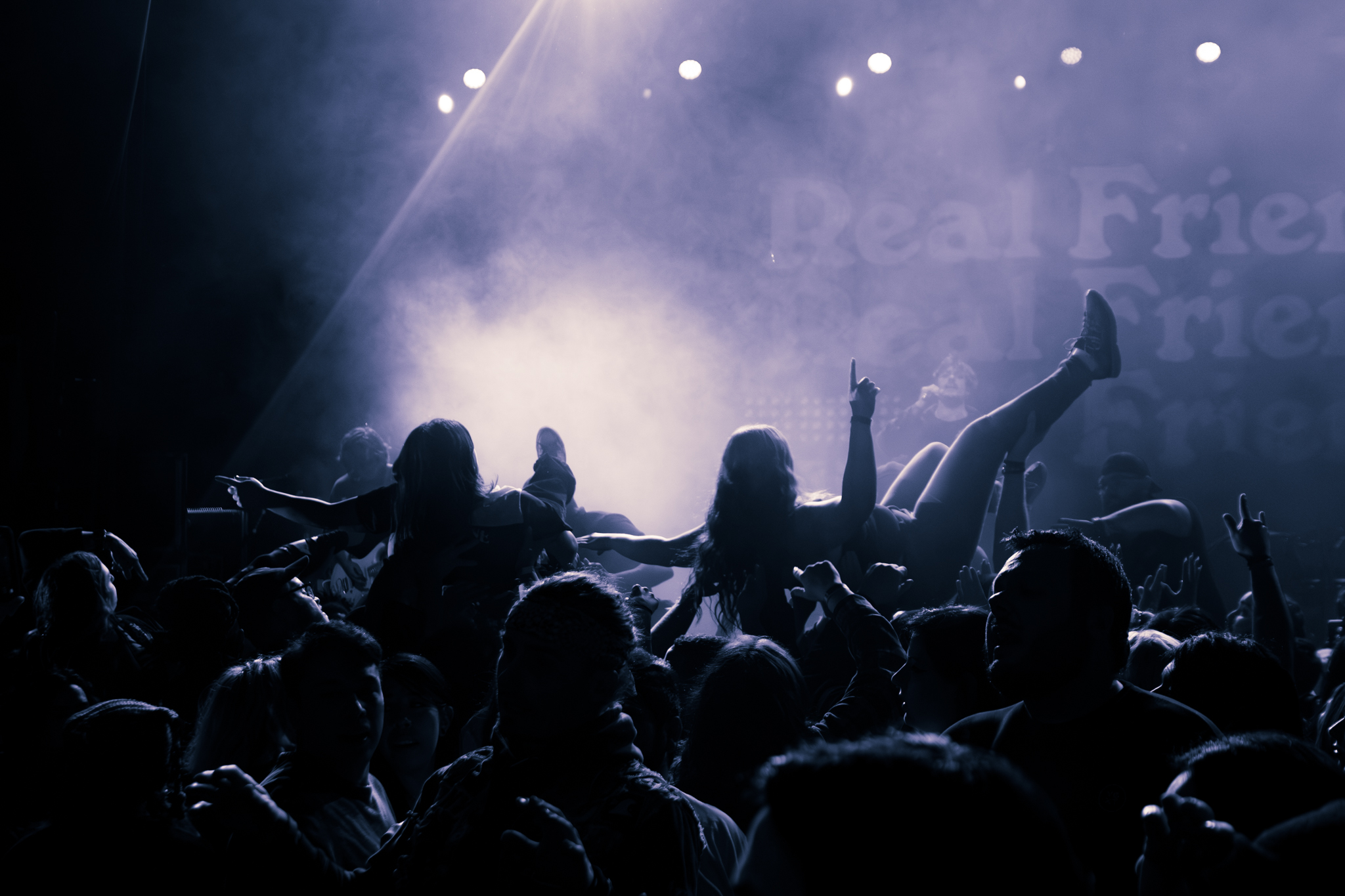 The band wasted absolutely no time once they got on stage with “Late Nights In My Car” as Muraro immediately called for two mosh pits on each side of the massive 2,700 capacity room. The thing about Real Friends is that they don’t just encourage the action, they join in on it. Waves of crowdsurfers began to glide through the air before Muraro made his way to the barricade and jumped on top of the crowd, grabbing the hands of those who surfed past him without missing a single note.