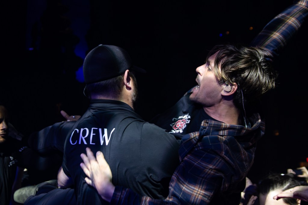 An extra special part of Real Friends’ live shows is when Muraro joins the crowd for “I’ve Given Up On You.” The singer hopped in the middle of the large sea of people to deliver an exceptionally emotional performance of the band’s most popular track. I’ve been lucky enough to find myself up close for this part twice now and each time has brought a wave of intensity that’s hard to describe. The raw emotion from the fans as they sing along with Muraro is what makes this moment integral to Real Friends’ sets. It’s heartwarming and a privilege to witness attendees connect with strangers over their shared love for this song and the band themselves.