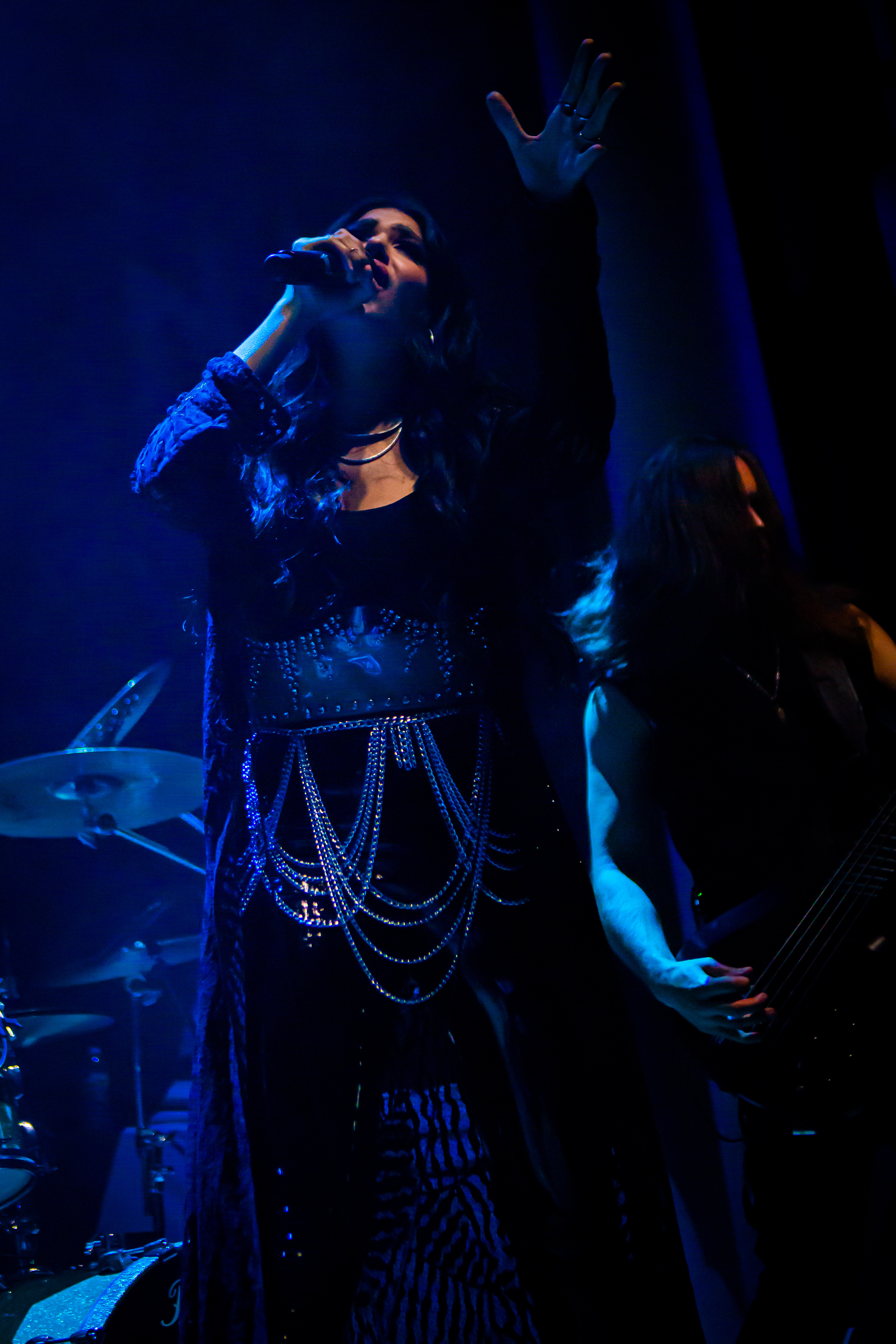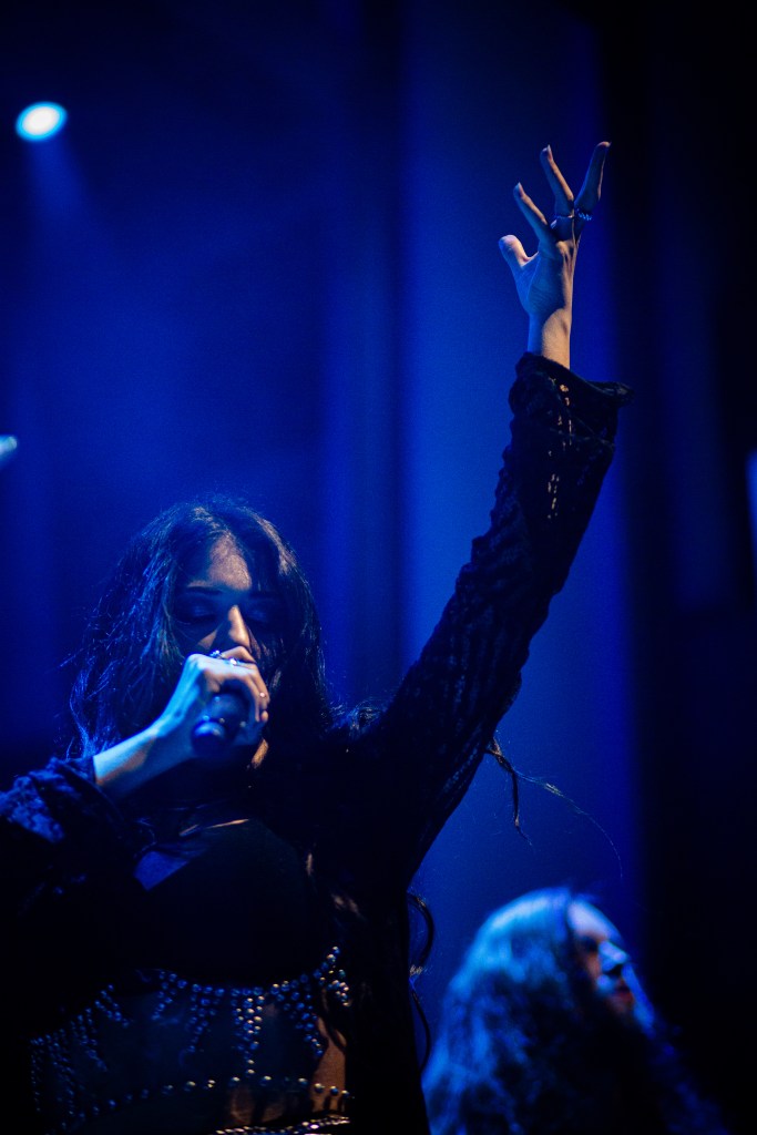 To start off the night on Kamelot’s tour, comes Xandria. A German symphonic metal band. With lead vocalist Ambre Vourvahis, rhythm guitar and keyboardist Marco Heubaum, bassist Tim Schwarz, and drummer Dimitrios Gatsios. Let me say this from a personal perspective. Wow! Simply put you have to hear it, see it, and witness it to understand the passion behind this band and how amazing they are from beginning to end truly incredible, with some pretty awesome added bonus that the singer does just all around amazing.