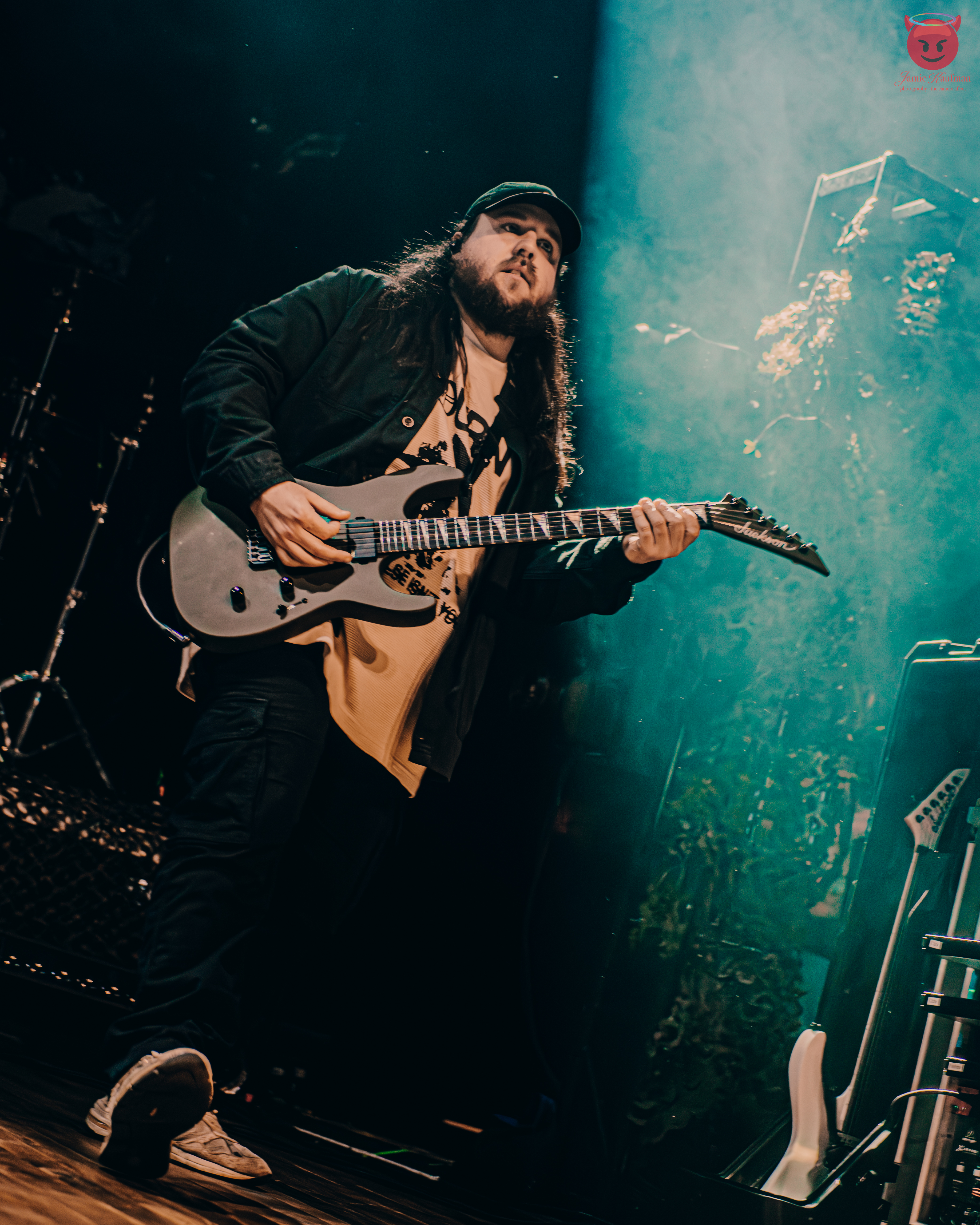 Next to the stage, Boundaries, hailing from Hartford, CT, transformed the area into a whirlwind of emotion and sound with their explosive opener, “Turning Hate Into Rage.” Their fusion of melodic hardcore and metalcore was not just heard; it was felt deep within every fiber of your being. The moment the piercing guitar tones from the incredible duo of Cody DelVecchio and Cory Emond erupted, I was completely captivated, swept up in the sheer force of their artistry. The band’s energy was off the charts as they leaped around the stage, creating an electric atmosphere that was impossible to ignore. Vocalist Matthew McDougal commanded the crowd with a magnetic and intense authority. His screams propelled the music forward, infusing it with an urgency that kept everyone on the edge of their seats. When they launched into their second track, “My Body Is A Cage,” the dynamic shifted to a heavier, doom-laden metalcore sound. The rapid, syncopated beats from drummer Tim Sullivan felt like a relentless heartbeat, driving the intensity even further. Their third song, “Darkness Shared,” immersed us deeper into a haunting metalcore realm, allowing bassist Nathan Calcagno’s deep grooves to resonate powerfully within the venue. His bass lines not only anchored the music but also intertwined beautifully with his clean vocals, creating a compelling contrast that enriched the overall experience. In total, Boundaries unleashed nine tracks during their set, delivering the most intense performance of the night. They skillfully balanced mesmerizing melodic moments with overwhelming bursts of heaviness, leaving the audience in awe. After eagerly anticipating the chance to experience and capture their electrifying energy, I can confidently say they surpassed all my expectations. I can hardly contain my excitement at the thought of immortalizing their vivid and aggressive spirit through my photography again in the future.