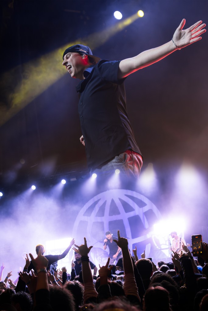 Openers for each show varied, with Brooklyn being lucky enough to get Broadside, Real Friends, and Cartel all in one night. Frontman Oliver Baxxter took complete control of the stage beneath him as soon as Broadside’s set began with “I Think They Know.” With their fifth album now weeks away from release, the Virginia pop-rockers gave Brooklyn a taste of their most recent singles while still showing some love to older fan-favorite tracks. It’s almost impossible to describe the emotions radiating off the crowd during “Coffee Talk,” with every word of the band’s most well-known hit echoing throughout the venue. This was my first time being able to catch Broadside live despite listening to them since 2018 and it was everything I could’ve hoped for and more.